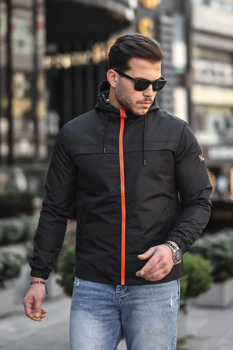 Изготовлен из водонепроницаемой ткани. На молнии и с капюшоном. Подходит для сезонного использования. Стильный вид благодаря цветной детали молнии. Модель PLDP 2920. Черного цвета.