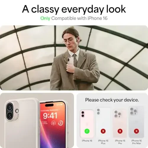 CYRILL Kajuk Mag is a premium phone case designed for your iPhone 16, crafted with high-quality vegan leather, combining elegance and protection. While complementing the elegance of your phone, it offers comprehensive protection against the impacts and scratches of daily use. The cream color of the case adds a sophisticated look to your device and allows you to reflect your style. CYRILL Kajuk Mag is not just a phone case, but also a style statement.The multi-layered structure of the case provides full protection for your device. Premium vegan leather placed on a solid PC (Polycarbonate) frame offers a luxurious touch to your phone, while TPU (Thermoplastic Polyurethane) bumpers provide effective protection against impacts. Spigen's award-winning Air Cushion Technology is used in the inner corners of the case to provide superior protection against drops. This technology absorbs impact energy and prevents damage to your phone.Raised bezels around the screen and camera protect the most sensitive points of your device from scratches. Thanks to its design that offers full access to charging ports and buttons, you can easily use all functions without removing the case. With the integrated magnet, you can quickly and easily charge with MagSafe chargers and accessories. The magnet securely aligns your device and ensures a smooth charging process.The raised micro-dot protrusions on the sides of the CYRILL Kajuk Mag case create a non-slip surface, allowing you to hold your phone more securely. This feature provides a great advantage, especially when using it with one hand. In addition, thanks to the phone lanyard holes, you can easily attach your favorite wrist straps, neck straps and other accessories. This feature allows you to personalize your phone and increase your ease of use. CYRILL Kajuk Mag is the perfect choice that combines elegance, protection and functionality. Designed for your iPhone 16, this case helps you protect your device safely while reflecting your style. MagSafe compatibility optimizes your wireless charging experience and works seamlessly with other MagSafe accessories. It is also compatible with other accessories such as CYRILL Kajuk Magnetic Wallets, offering many ways to personalize and enhance the functionality of your phone.