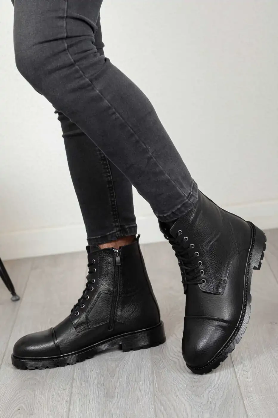 Мужские зимние ботинки D402 из натуральной кожи, защищающие от холода, разработаны, чтобы держать ваши ноги в тепле и сухости зимой. Верх из высококачественной натуральной кожи обеспечивает воздухопроницаемость и водонепроницаемость, защищая ваши ноги в любую погоду. Резиновая подошва обладает противоскользящими свойствами, обеспечивая надежное сцепление с каждым шагом.