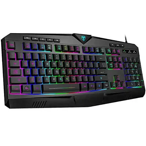 Dacoity Gaming Keyboard, Full Size RGB Backlit Quiet Computer Keyboard, Wrist Rest, Silent Keys, Multimedia Keys, Anti-ghosting, Waterproof Light Up USB Wired Keyboard for PC Mac Xbox Gamer Office