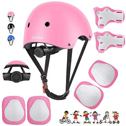 DaCool Bolalar Velosiped Dubulg'asi To'plami Rolikli Kon'ki Uchundagi Tizliklar - Bolalar Dubulg'asi Tirgaklar Bilek Himoyachilari 3~10 Yilgacha Qiz O'g'il Bolalar Sport Velosiped Rolikli Kon'ki Skuter Himoya Qilish Uskunasi To'plami