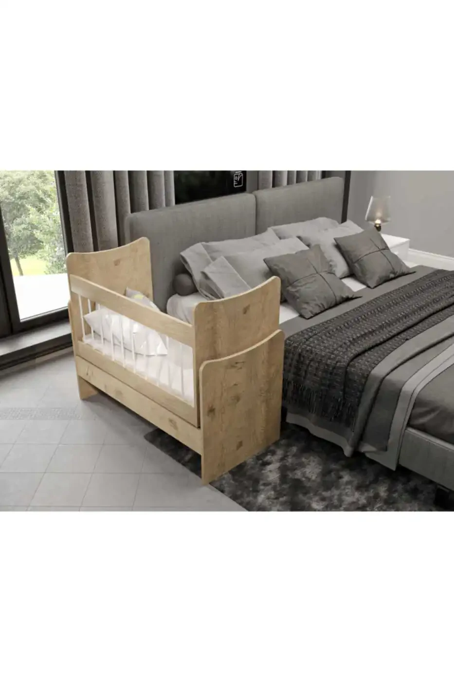 Papatya Anne Yanı Beşik Meşe is a modern and stylish option designed with your baby's comfort and safety in mind. This cradle is made entirely of 1st class MDF material, which offers long-lasting and durable use. It is a perfect solution for your baby's first months, especially for bedside use. Since it is designed as a bedside crib, you can be close to your baby throughout the night and easily meet their breastfeeding and other needs. This feature provides great convenience, especially for new mothers. The rocking feature of the cradle helps your baby fall asleep comfortably, while the fact that it can be fixed when desired provides a safe sleeping environment. This dual-functional design meets your baby's different needs. The mosquito net protects your baby's delicate skin from mosquitoes and other external factors, ensuring your baby has a peaceful sleep experience. The mosquito net makes your baby's sleeping area safe and comfortable. With its modern design, the cradle adapts to all kinds of baby room decorations. The oak color gives the cradle a warm and natural look. The high-quality material structure and careful workmanship of Papatya Anne Yanı Beşik Meşe make it one of the best options for both your baby and you. The easy installation, ease of use and stylish design of the cradle set it apart from other cradles. It provides a safe and comfortable sleeping area that does not contain any substances harmful to your baby's health. Papatya Anne Yanı Beşik Meşe makes parents' lives easier by offering the comfort, safety and practicality that your baby needs in the first months. It is an ideal choice for your baby's comfort and your peace of mind.