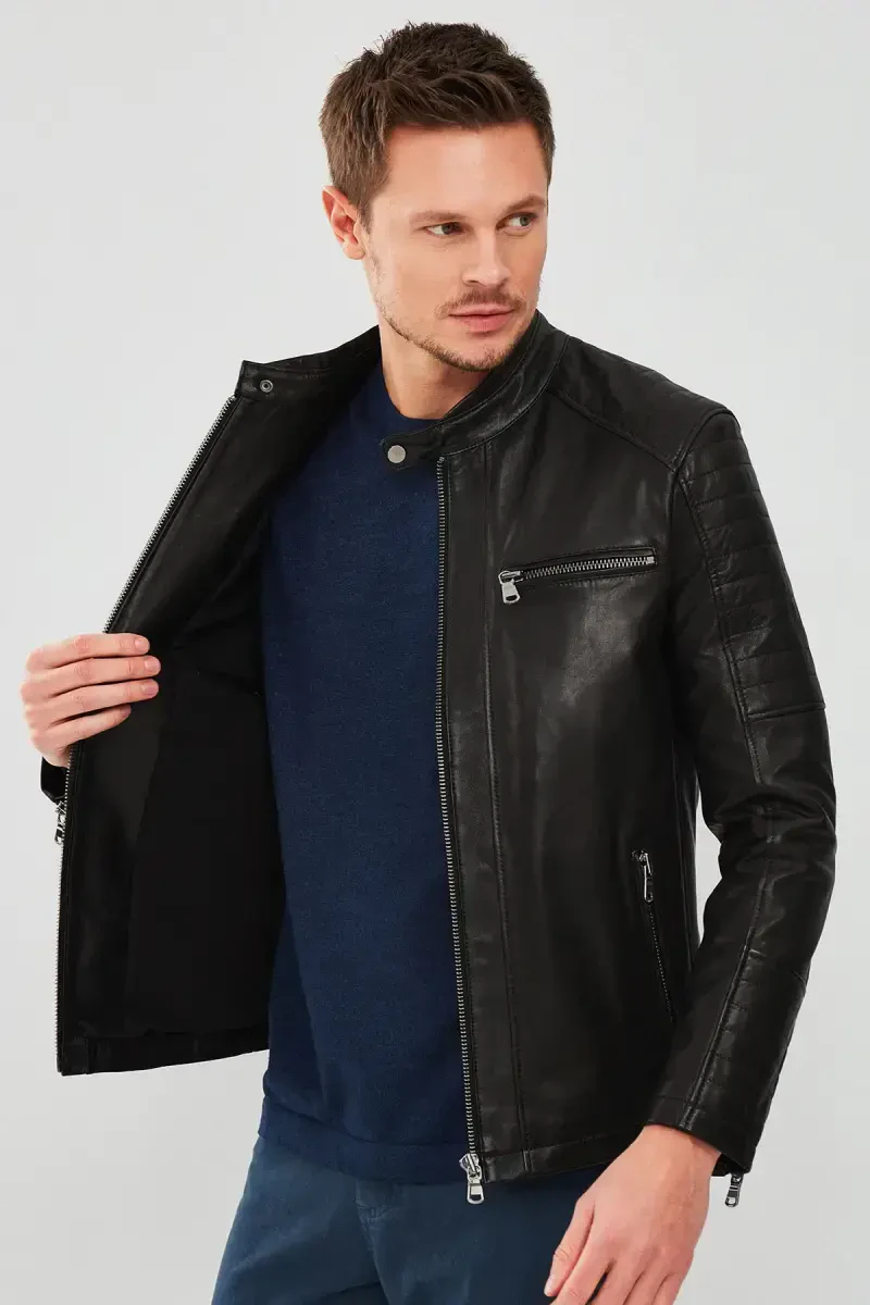 Кожаная куртка спортивного стиля для мужчин Dali черная - 22sgm6348ve