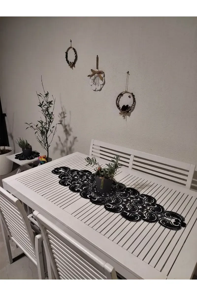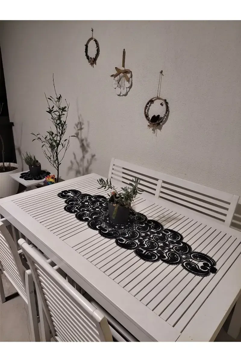 Damla Luks Runner: Qora Gipürli Chiroyli Dizayn | Uy Dekorasi va Sep