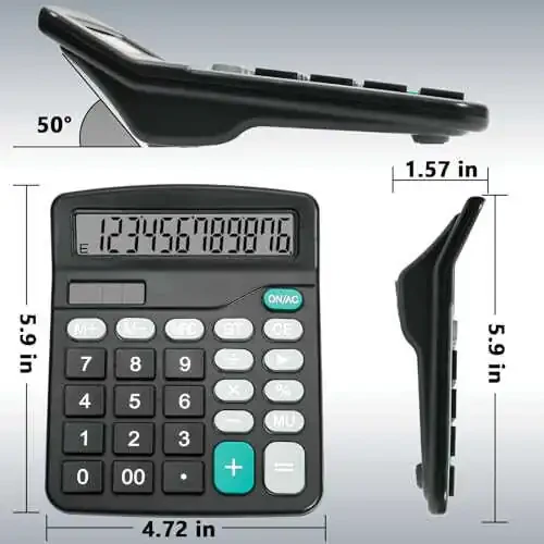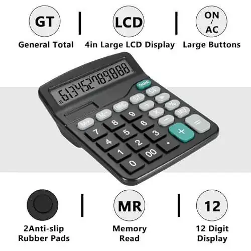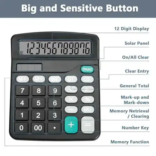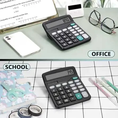 Black Desktop Calculator - Stay on top of your calculations with this desktop calculator, featuring a large display screen and dual power sources (solar and battery) for ultimate convenience. Dual Power Supply - The simple calculator is powered by both solar energy and batteries, and can be used in areas with ample light without batteries. Due to changes in lighting in daily life, it is recommended to use batteries for power supply at the same time. This calculator requires an AA BATTERY, please note that the battery is not included in the packaging. Big Buttons - Add a touch of personality to your workspace with this cute black calculator, complete with big buttons for easy use and a slim design that won't take up too much room on your desk. 12 Digit Display Screen -12 digit numerical calculation, sufficient for daily use, and the large LCD display screen makes it easier for you to read. Get back to basics with this simple calculator, perfect for everyday use at home, school, or the office. Cute Black Calculator - Whether you're a student or professional, it's reliable and easy to use, with a big display screen and solar power option for ultimate convenience. Plus, the cute black design makes it stand out from other calculators on the market.