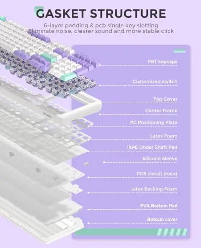 DAREU EK98pro Wireless Mechanical Keyboard elevates your gaming and work experience with its superior performance and customizable design. Equipped with Gasket Hot Swappable Custom Structure, Creamy Pre-lubed Linear Switches, and durable PBT Keycaps, this keyboard is an ideal choice for both Windows and Mac users, offering BT5.0/2.4GHz/USB-C connectivity options and RGB Backlit illumination. Unlike traditional keyboards, the EK98pro is specifically designed to deliver a unique feel with every keystroke. Thanks to the gasket mount structure and PCB single key slotting technology, vibration and noise generated when pressing the keyboard keys are minimized, resulting in a smoother and quieter typing experience. The five-layer filling material fills the gap between the PCB and the positioning plate, reducing key sound and providing a fuller feel. DAREU EK98pro offers three different connection options: BT5.0, 2.4GHz wireless, and USB-C wired mode. This allows you to easily connect your keyboard to any device and enjoy an uninterrupted experience. With N-key rollover (NKRO) feature, all keys are correctly recognized even when multiple keys are pressed simultaneously, which provides a significant advantage, especially in fast-paced games. The hot-swappable PCB allows you to easily replace the switches on your keyboard. Pre-lubed Hifi Dream linear switches offer a smooth and quiet typing experience. Additionally, the keyboard supports 3 or 5 pin switches, allowing you to completely customize your keyboard by using any switches you desire. Large keys are equipped with third-generation satellite shafts, which allows the keys to operate more stable and smoothly. South-facing RGB lighting enhances the aesthetics of your keyboard and makes your gaming experience more immersive. With 16.8 million color options and adjustable brightness levels, you can customize the lighting of your keyboard as you wish. You can customize all RGB macro and key settings via software. The 98% layout design allows you to create more space on your desktop while preserving the necessary arrow keys and numeric keypad. Durable and oil-resistant PBT keycaps offer a long-lasting and comfortable typing experience. The built-in 4000mAh battery provides up to 45 days of use with the lights off, so you don't have to worry about charging your keyboard frequently.