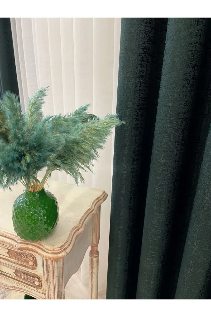 Bring the peace and elegance of nature together in your home with the Dark Green Jacquard Background Self-Patterned Curtain. This special design curtain adds a sophisticated touch to your space with its dark green tone and elegant jacquard pattern, while offering an eye-catching appearance with its self-patterned structure. Thanks to the 1/2.5 pleat frequency, the curtain offers both a full and rich stance and allows you to effectively control the light. The high-quality jacquard fabric offers long-lasting use and easy maintenance advantages, while the texture of the curtain adds warmth and depth to your space. The soothing effect of the dark green color helps you create a calm and peaceful atmosphere in your living areas, while the jacquard pattern adds elegance and delicacy to the environment. This curtain is not just a window covering, but also an important part of your home decoration. By using it in your living room, bedroom or dining room, you can easily change the overall ambiance of the space. Thanks to the easy-to-hang structure and standard sizes of the curtain, installation is quite practical. The Dark Green Jacquard Background Self-Patterned Curtain is a perfect match for both modern and classically decorated homes. If you want to add a natural elegance and a warm atmosphere to your home, this curtain is for you. With its eye-catching pattern, high-quality fabric and stylish look, the Dark Green Jacquard Background Self-Patterned Curtain is the easiest and most effective way to beautify your living spaces.