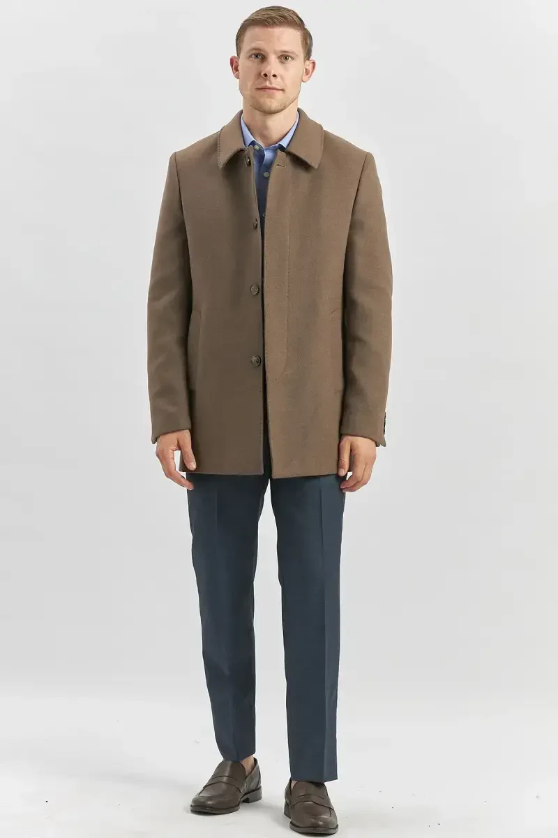 Dark Mink Cashmere Coat | Baby Collar, Comfort Fit, Wool Blend
