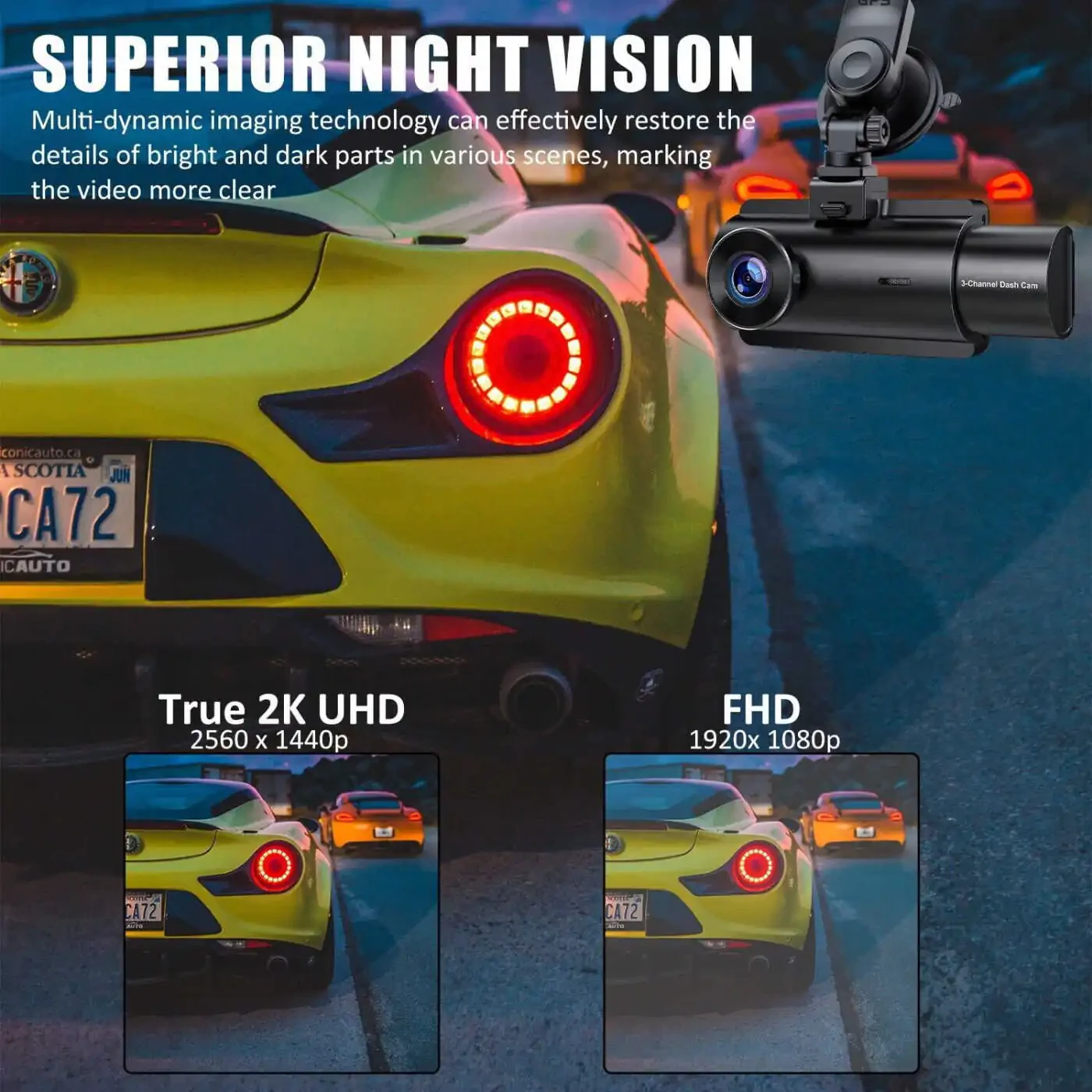 **Элегантный Dash Cams Dash-камера для передней и задней части автомобиля с 3 объективами, 4K WiFi, регистратор**Представляем переднюю и заднюю Dash Cam Elegant Choise, идеального спутника для каждого путешествия. Благодаря высокоточному отслеживанию GPS вы всегда можете рассчитывать на точные данные о местоположении. Кристально чистая запись, благодаря фронтальной камере 2K и внутренним и задним камерам 1080P, гарантирует, что вы никогда не упустите важных деталей на дороге. Независимо от того, день это или ночь, наша приборная панель обеспечивает исключительное качество изображения и улучшенное ночное видение. Управляйте своей приборной камерой и получайте доступ к расширенным функциям через приложение LuckyCam на своем смартфоне. Настройте параметры, воспроизводите или загружайте видео прямо со своего устройства. Встроенный GPS-модуль регистрирует ваш маршрут вождения и скорость в режиме реального времени, предоставляя ценную информацию для ваших путешествий. Безопасность — наш главный приоритет. Передняя и задняя Dash Cam Elegant Choise оснащена встроенным G-датчиком, который обнаруживает столкновения и запускает аварийную запись. Даже если ваша SD-карта заполнена, функция циклической записи обеспечивает постоянную защиту. Будьте уверены, что каждый важный момент запечатлен. Наша приборная камера совместима с TF-картами объемом до 256 ГБ (не входят в комплект) для обеспечения достаточной емкости хранилища. Приготовьтесь ощутить разницу с передней и задней Dash Cam Elegant Choise. Оставайтесь в безопасности, оставайтесь защищенными и фиксируйте каждый момент на дороге.