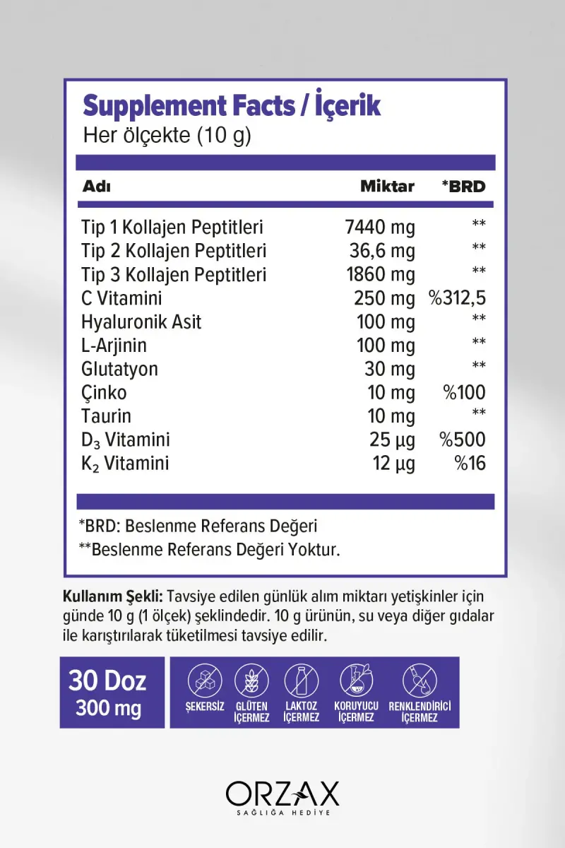 - Yuqori sifatli gidrolizlangan kollagen tarkibi.