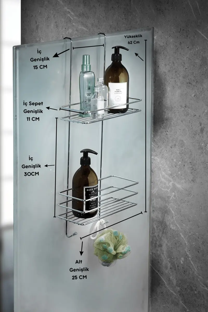 Bu ürün SASGLOBAL tarafından gönderilecektir.Kampanya fiyatından satılmak üzere 10 adetten fazla stok sunulmuştur.Bir ürün, birden fazla satıcı tarafından satılabilir. Birden fazla satıcı tarafından satışa sunulan ürünlerin satıcıları ürün için belirledikleri fiyata, satıcı puanlarına, teslimat statülerine, ürünlerdeki promosyonlara, kargonun bedava olup olmamasına ve ürünlerin hızlı teslimat ile teslim edilip edilememesine, ürünlerin stok ve kategorileri bilgilerine göre sıralanmaktadır.Bu üründen en fazla 20 adet sipariş verilebilir. 20 adedin üzerindeki siparişleri Trendyol iptal etme hakkını saklı tutar. Belirlenen bu limit kurumsal siparişlerde geçerli olmayıp, kurumsal siparişler için farklı limitler belirlenebilmektedir.15 gün içinde ücretsiz iade. Detaylı bilgi için [page="return_conditions"]tıklayın .✔️ Delme ve vidalama gerektirmeyen pratik kurulum✔️ Modern ve şık krom tasarım✔️ Nemli ortamlarda uzun ömürlü kullanım✔️ Kolayca temizlenebilir yüzey✔️ Duşakabin veya cam üzerine askılı, ek aparata ihtiyaç yok✔️ Sabunluk ve şampuanlık için özel bölmeler