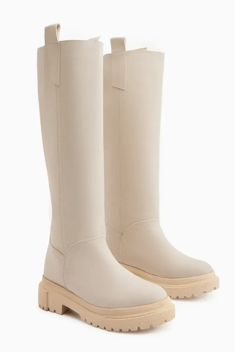 Dayna Beige Chunky Sole Pull-On Women's Boots can be cleaned with a damp cloth. Avoid exposure to direct sunlight. It is recommended to use leather care products regularly for the product to last longer. Please consider your foot size when making your size selection. You can easily use it with different clothing combinations.