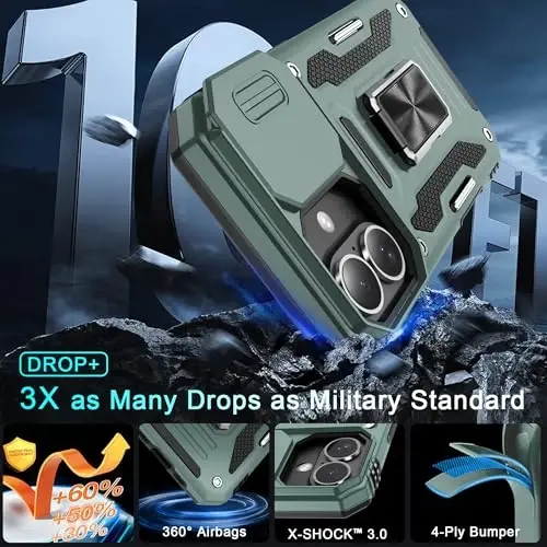 DEERLAMN iPhone 16 Case is designed to provide superior protection for your phone against bumps, scratches, and drops. This case is equipped with a range of features, including a sliding camera cover, screen protectors, a rotating ring stand, and military-grade drop test certification. It is specifically designed for the iPhone 16 (6.1 inch), which will be released in 2025, and is not compatible with other devices. Precise cutouts allow easy access to all buttons, camera, speakers, and ports.Military-grade protection is provided by a combination of dual-layer impact-resistant TPU and PC materials. This multi-layer cushioning structure provides additional shock absorption. The case is certified by Military Standards and has successfully passed over 8,000 drop tests from heights up to 8 feet. The flexible TPU inner part absorbs impacts from the inside, while the four reinforced corners effectively reduce the impact of falls.Camera and screen protection is provided by the sliding camera cover. This cover protects your phone's camera lens from scratches. In addition, slightly raised 1.8mm screen edges and a glass screen protector provide extra and comprehensive protection for your screen. It ensures that every aspect of your phone is uniquely protected.The newly upgraded multi-functional case has a built-in ring stand and metal patch. The rotating ring provides two stand modes for vertical and horizontal viewing. This allows you to free your hands while watching videos by using it as a ring holder. The metal patch on the back easily attaches to magnetic car mounts and is very convenient for navigation while driving. You will love how useful it is with so many powerful functions. The DEERLAMN iPhone 16 case is designed to make your life easier while keeping your phone safe.