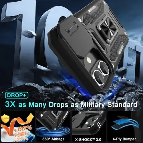 Protect your iPhone 17 (6.3 inches, 2025 model) with the DEERLAMN Armor Case, specifically designed to provide superior protection against impacts, scratches, and daily wear and tear. This case comes with a sliding camera cover and screen protectors, ensuring every corner of your device is secure. Offering military-grade protection, this case is made from a combination of TPU and PC materials, and its multi-layered structure maximizes shock absorption. It has successfully passed over 8000 drop tests from 8FT, proving its durability. The flexible TPU inner part absorbs impacts, while the reinforced four corners minimize potential damage from drops. The sliding camera cover protects your phone's camera lens from scratches and scuffs, while the 1.8 mm raised screen edges and tempered glass screen protectors provide extra and comprehensive protection for your screen. The integrated magnetic ring stand offers two different modes for vertical and horizontal viewing. This feature allows you to free your hands while watching videos and can also be used as a ring holder. Thanks to its metal patch, it easily attaches to magnetic car holders, making it extremely useful for navigation while driving. This case not only provides protection but also stands out with its stylish design and useful features. It has precise cutouts that provide easy access to all your phone's buttons, camera, speakers, and ports. With the DEERLAMN Armor Case, you can safely use your iPhone 17 and enjoy every moment.