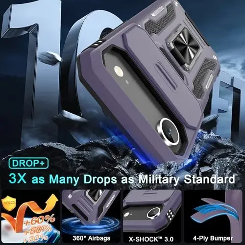 Armor Case with sliding camera cover specially designed for iPhone Air 6.5-Inch (2025 released). NOT fit for other device! The precise cut out fits each button,camera,speakers and ports precisely, easy to press and access Military Grade Protection: Double layer shockproof case made by TPU+PC.This multi-layer cushion structure provide additional shock absorption protection.Certified by the Military Standard,survived over 8,000+ drop tests from up to 8FT!The flexible TPU interior absorbs impacts from inside.In addition,exterior with four reinforced corners can effectively absorb the impact of falling Camera and Screen Protection: Sliding camera cover protect the phone case camera lens from getting scratched and scuffed.Subtly enhanced 1.8 mm screen lips and glass screen protector provide the screen extra and comprehensive protection.Ensuring every aspect of your phone is protected with uniquely Magnetic Ring Kickstand: Newly upgraded multi-function case built-in ring kickstand and metal patch.Rotating ring provide two stand modes for vertical horizontal viewing,so it can be used as ring holder and release your hand when watching video.The Metal Patch back easily attach to magnetic car mount,very convenient during driving time for navigation.You will love how convenient it is with such powerful functions What's You Get: The package come with 1 pack phone case and 2 pack screen protector tempered glass. Notice: Due to the metal ring on the back,this case will NOT work with wireless charging function.