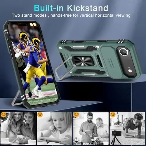 Armor Case with sliding camera cover specially designed for iPhone Air 6.5-Inch (2025 released). NOT fit for other device! The precise cut out fits each button,camera,speakers and ports precisely, easy to press and access Military Grade Protection: Double layer shockproof case made by TPU+PC.This multi-layer cushion structure provide additional shock absorption protection.Certified by the Military Standard,survived over 8,000+ drop tests from up to 8FT!The flexible TPU interior absorbs impacts from inside.In addition,exterior with four reinforced corners can effectively absorb the impact of falling Camera and Screen Protection: Sliding camera cover protect the phone case camera lens from getting scratched and scuffed.Subtly enhanced 1.8 mm screen lips and glass screen protector provide the screen extra and comprehensive protection.Ensuring every aspect of your phone is protected with uniquely Magnetic Ring Kickstand: Newly upgraded multi-function case built-in ring kickstand and metal patch.Rotating ring provide two stand modes for vertical horizontal viewing,so it can be used as ring holder and release your hand when watching video.The Metal Patch back easily attach to magnetic car mount,very convenient during driving time for navigation.You will love how convenient it is with such powerful functions What's You Get: The package come with 1 pack phone case and 2 pack screen protector tempered glass. Notice: Due to the metal ring on the back,this case will NOT work with wireless charging function.