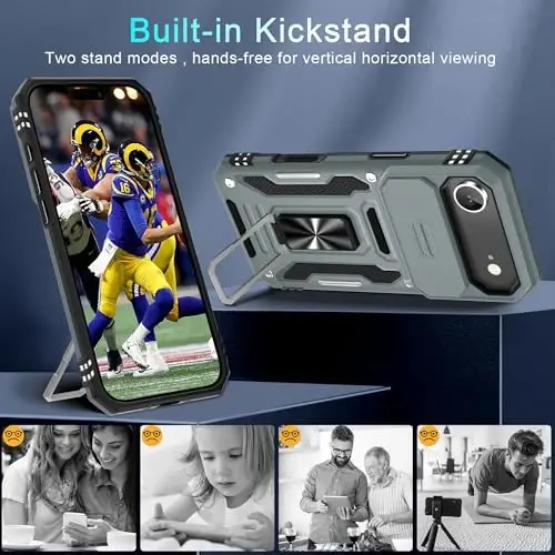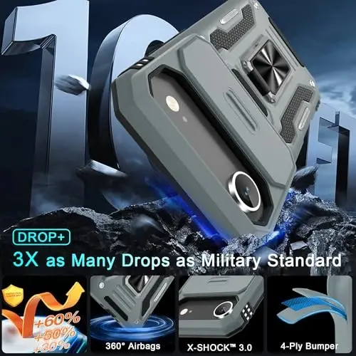 Armor Case with sliding camera cover specially designed for iPhone Air 6.5-Inch (2025 released). NOT fit for other device! The precise cut out fits each button,camera,speakers and ports precisely, easy to press and access Military Grade Protection: Double layer shockproof case made by TPU+PC.This multi-layer cushion structure provide additional shock absorption protection.Certified by the Military Standard,survived over 8,000+ drop tests from up to 8FT!The flexible TPU interior absorbs impacts from inside.In addition,exterior with four reinforced corners can effectively absorb the impact of falling Camera and Screen Protection: Sliding camera cover protect the phone case camera lens from getting scratched and scuffed.Subtly enhanced 1.8 mm screen lips and glass screen protector provide the screen extra and comprehensive protection.Ensuring every aspect of your phone is protected with uniquely Magnetic Ring Kickstand: Newly upgraded multi-function case built-in ring kickstand and metal patch.Rotating ring provide two stand modes for vertical horizontal viewing,so it can be used as ring holder and release your hand when watching video.The Metal Patch back easily attach to magnetic car mount,very convenient during driving time for navigation.You will love how convenient it is with such powerful functions What's You Get: The package come with 1 pack phone case and 2 pack screen protector tempered glass. Notice: Due to the metal ring on the back,this case will NOT work with wireless charging function.