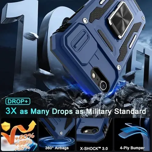 Compatible with: Armor Case with sliding camera cover specially designed for iPhone Se 2020/2022; iPhone 7/8 4.7-Inch. NOT fit for other device! The precise cut out fits each button,camera,speakers and ports precisely, easy to press and access Military Grade Protection: Double layer shockproof case made by TPU and PC.This multi layer cushion structure provide additional shock absorption protection.Certified by the Military Standard,survived over 8,000 drop tests from up to 8FT!The flexible TPU interior absorbs impacts from inside.In addition,exterior with four reinforced corners can effectively absorb the impact of falling Camera and Screen Protection: Sliding camera cover protect for iPhone Se 2020 case camera lens from getting scratched and scuffed.Subtly enhanced 1.8 mm screen lips and glass screen protector provide the screen extra and comprehensive protection.Ensuring every aspect of your phone is protected with uniquely Magnetic Ring Kickstand: Newly upgraded multi function case built in ring kickstand and metal patch.Rotating ring provide two stand modes for vertical horizontal viewing,so it can be used as ring holder and release your hand when watching video.The Metal Patch back easily attach to magnetic car mount,very convenient during driving time for navigation.You will love how convenient it is with such powerful functions What's in the Package: The package come with 1 pack phone case,pack tempered glass screen protector and 1 pack Cleaning Kit. Notice: Due to the metal ring on the back,the case will NOT work with Wireless Charging function directly