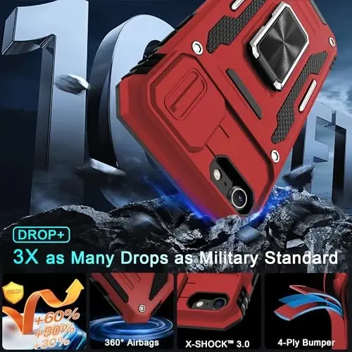DEERLAMN Case for iPhone SE 2022/2020,for iPhone 8/7 with Slide Camera Cover + Screen Protector,Rotated Ring Kickstand Military Grade Shockproof Protective Cover 4.7 Inch-Red