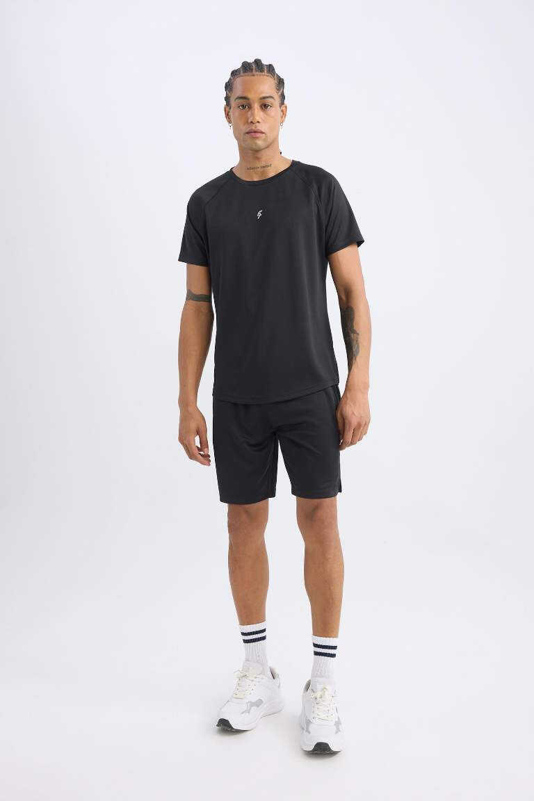 DeFactoFit Slim Fit Bicycle Neck Printed Short Sleeve Sports T-Shirt Black