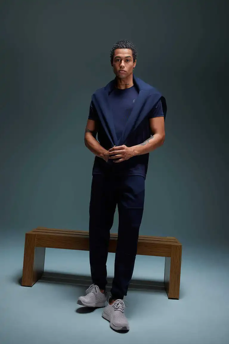 The DeFactoFit Slim Fit Double Pocket Elastic Leg Scuba Diving Fabric Sports Jogger Sweatpants is the perfect choice to add style and comfort to your everyday look. Made from soft and flexible scuba diving fabric, these sweatpants provide all-day comfort. The slim fit cut sits perfectly on your body, while the double pockets offer practicality. The elastic legs provide freedom of movement, ensuring comfort with every step. The navy color complements any style, completing your look.