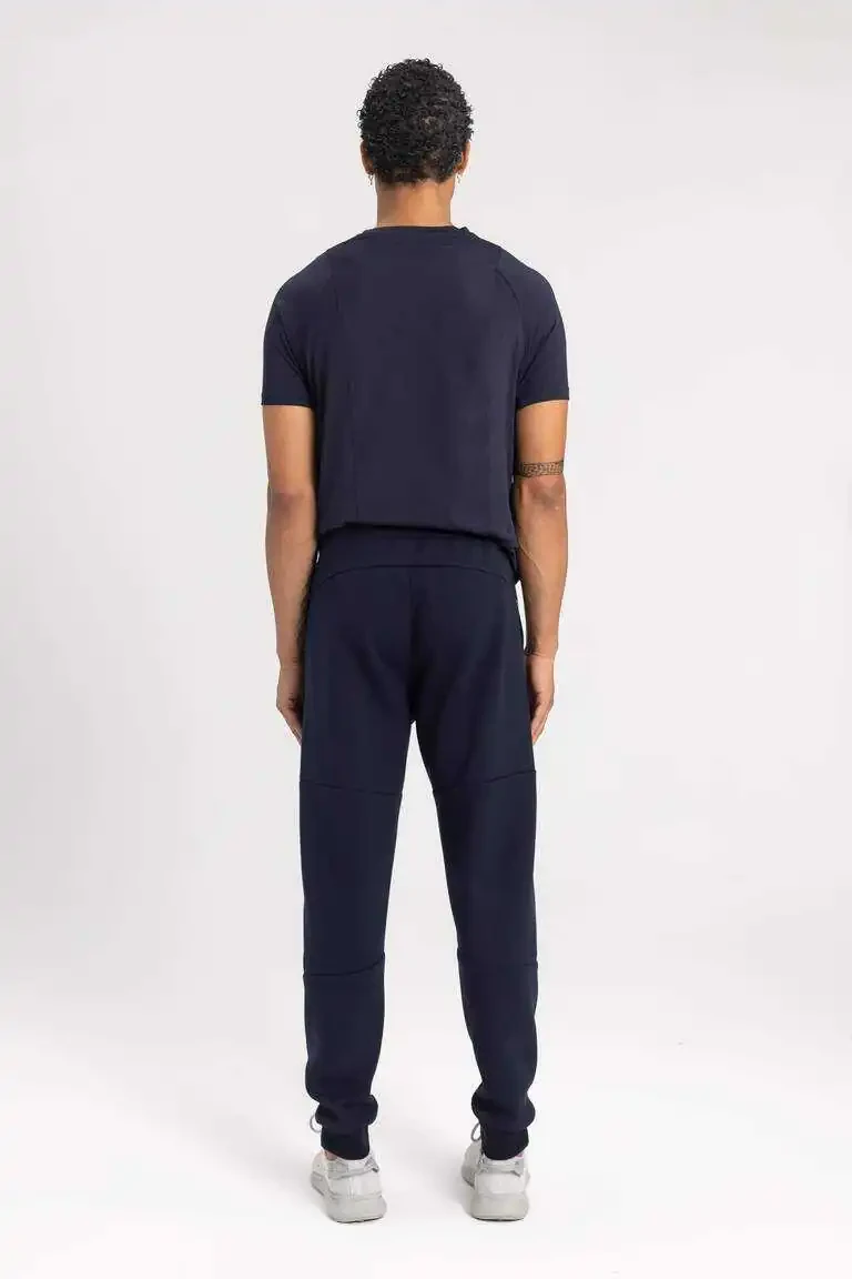 The DeFactoFit Slim Fit Double Pocket Elastic Leg Scuba Diving Fabric Sports Jogger Sweatpants is the perfect choice to add style and comfort to your everyday look. Made from soft and flexible scuba diving fabric, these sweatpants provide all-day comfort. The slim fit cut sits perfectly on your body, while the double pockets offer practicality. The elastic legs provide freedom of movement, ensuring comfort with every step. The navy color complements any style, completing your look.