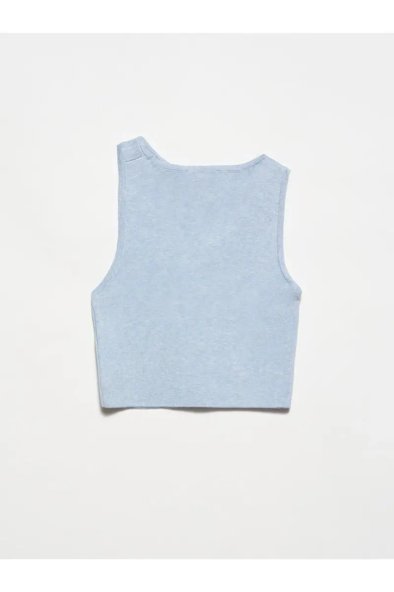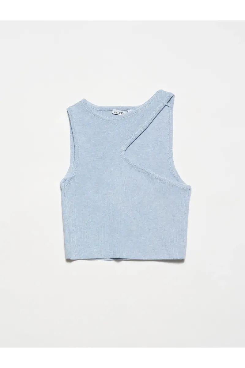 Декольте Яка Трико Топ - Мави Меланж | Шик ве Рахат