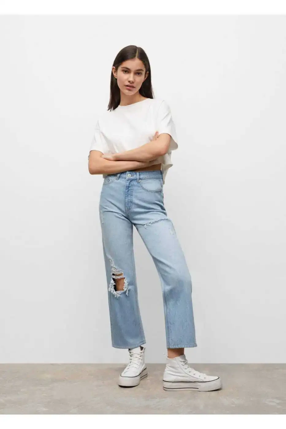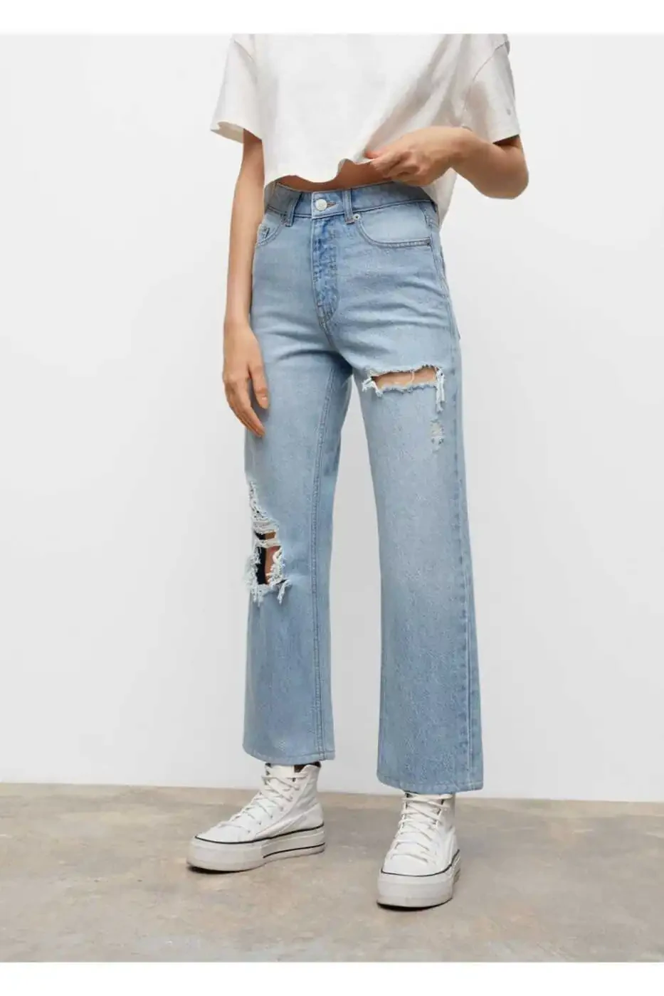 Dekoratif Yırtıklı Düz Kesim Jean ile Şık ve Konforlu Kombinler