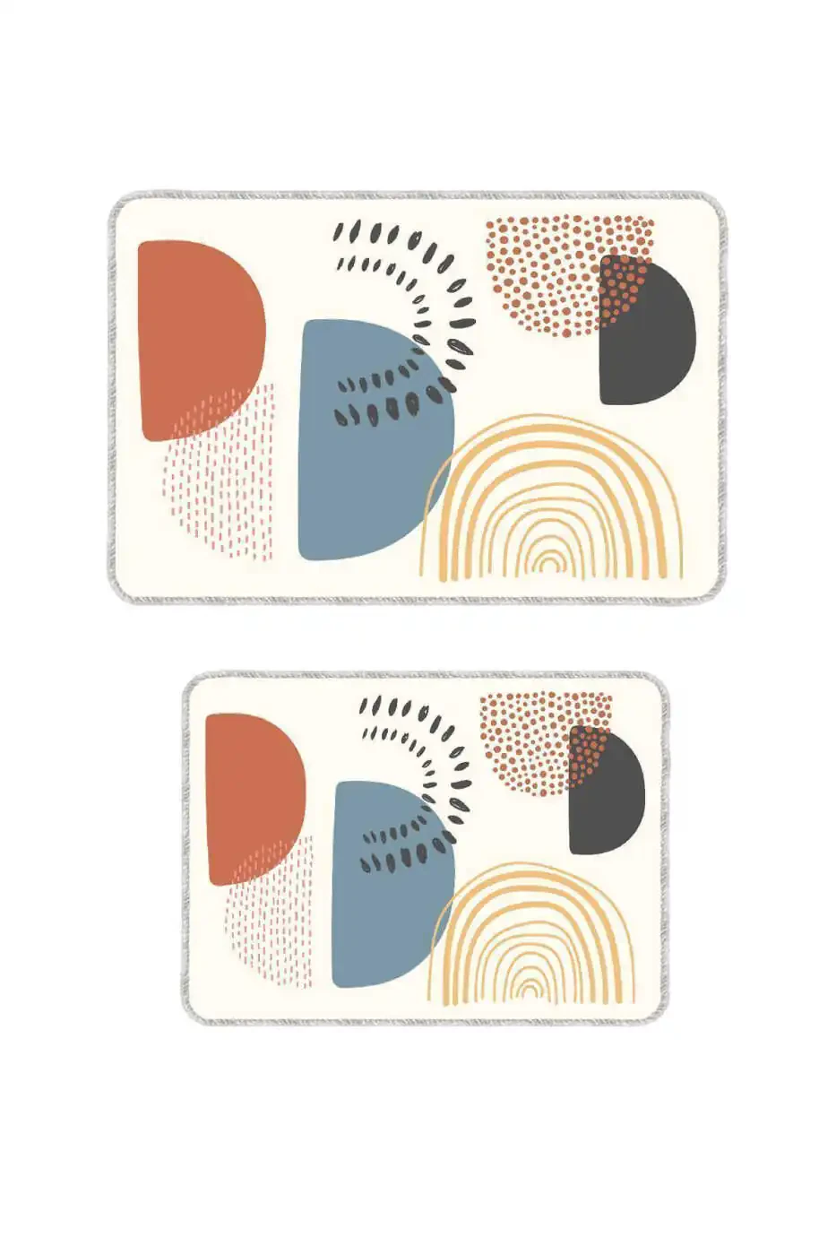 Ҳаммомга замонавий ва занггинам кўриниш бериш учун мўлжалланган Декоратив замонавий дизайнли сирпанмас тагли ювиладиган сет-тўплам рангли ҳаммом паспаси, ҳам эстетик, ҳам функционал хусусиятларга бой маҳсулотдир. Рангли геометрик нақшлари билан ҳаммомга жонлилик бағишлайди ва маконга ўз услубингизни акс эттиради. Сирпанмас тагли туфайли хавфсиз ва қулай фойдаланишни таъминлайди, полиэстер материали билан узоқ йиллар давомида ўз чидамлилигини сақлайди. Амалий тозаланиши билан гигиеник ҳаммом тажрибасини ўтказишингизни таъминлайди. 50x60 см ва 60x90 см ўлчамли икки қисмли тўплами билан ҳаммомингизнинг ҳар бир бурчагига мос келади. Юқори сифатли материаллардан тайёрланган бу паспас тўплами, кундалик фойдаланишда ҳам ўз жозибаси ва функционаллигини сақлаб, ҳаммомингизнинг кўзга ташланувчи қисми бўлишга номзоддир. Ҳам занггинам кўринишни изловчилар, ҳам хавфсизликни биринчи ўринга қўйганлар учун идеал танловдир. Бетакрор дизайни ва амалий фойдаланиши билан ҳаммомингизга тетиклик ва услуб бағишлайдиган бу паспас тўплами, уйингизнинг энг завқли бурчакларидан бири бўлган ҳаммомингизга янги нафас беради. Узоқ муддатли фойдаланиш, осон тозалаш ва занггинам дизайни билан ҳаммомингизнинг ажралмас қисмларидан бирига айланадиган бу паспас тўпламини қўлдан бой берманг!