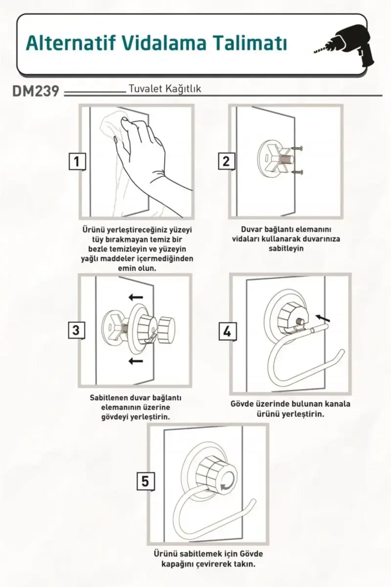 No Drilling, Screws, or Drills Needed! Effortlessly organize and style your bathroom with the Vacuum Toilet Paper Holder, Toilet Paper Rack Matte Black DM239! This practical product, offered by Teknotel Chrome Home Products, is easily installed without the need for wall drilling, screws, or drills. Thanks to its vacuum system, it adheres firmly to flat and glossy surfaces, including tiles, without causing any damage. With its durable construction capable of holding up to 5 kg, you can use it with confidence for many years. Assembly is easily accomplished by following the simple instructions in the images. However, if you are not satisfied with the vacuum system, you can securely fasten the product by screwing it in place using the included fitting. This product, in matte black, will add a modern and stylish touch to your bathroom. It measures 15 x 5 cm and is 12 cm high. Please note that Trendyol reserves the right to cancel orders of more than 10 units. Don't miss out on this product, offered directly and with an invoice by a leading Turkish company that exports to 50 countries! You can purchase with peace of mind thanks to the 15-day free return option. There may be slight variations in color tones on your screen.