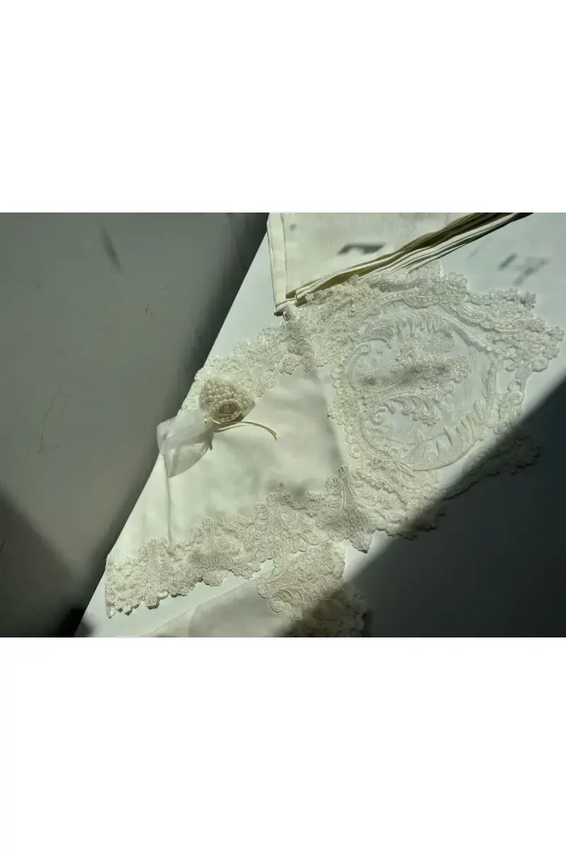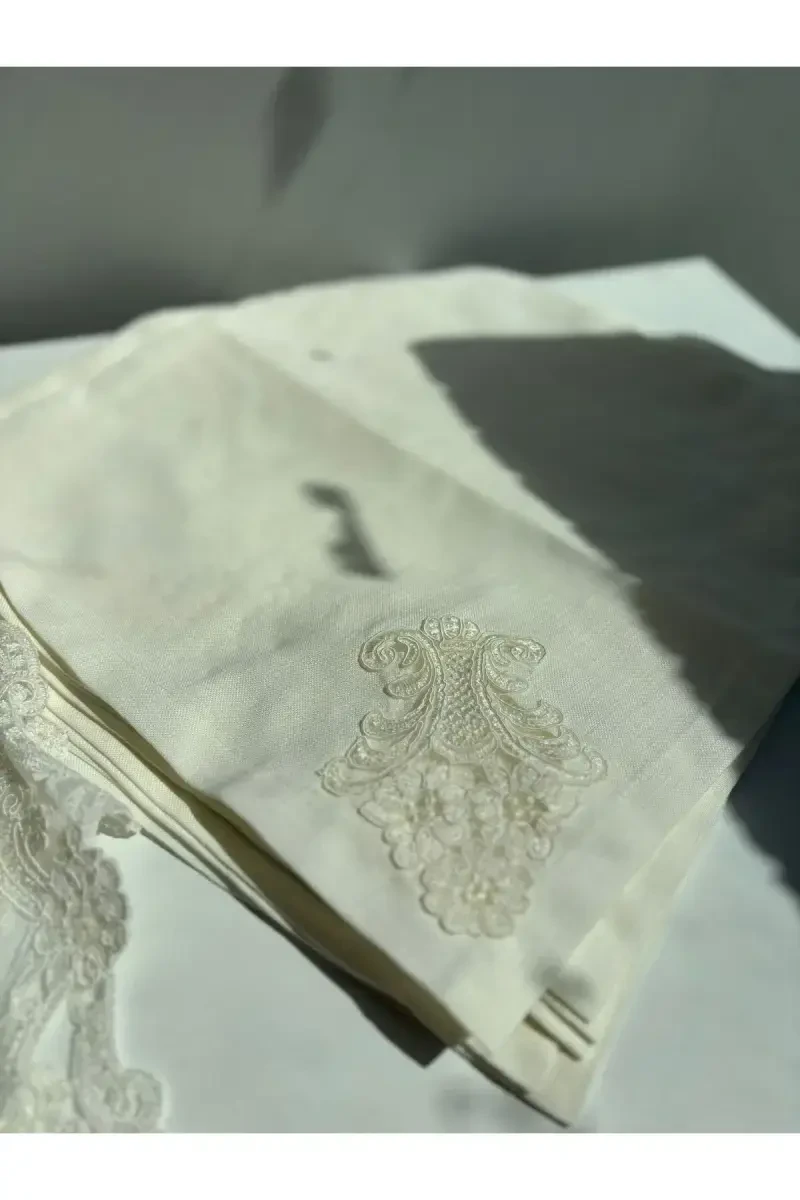 The Demet Ecru 12-Person 26-Piece French Lace Dowry Dinner Tablecloth Set Runner Team will be an indispensable part of your tables, adding elegance and style to your home decor. The tablecloths adorned with delicate French lace will help you create a stylish atmosphere for your special days and everyday meals.