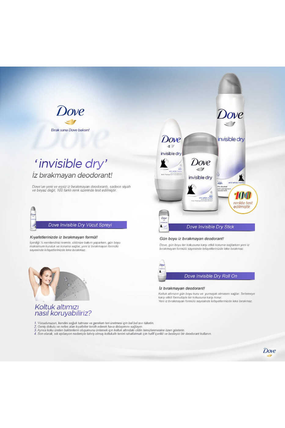 Deodorant Invisible Dry Stick o'zining maxsus formulasi tufayli terlashni oldini oladi va yoqimsiz hidni yo'q qiladi. Shuningdek, ko'rinmas formulasi tufayli oq iz qoldirmaydi va kiyimlaringizda dog' hosil qilmaydi. Shu tariqa, siz kun bo'yi erkin harakatlanishingiz va o'zingizni qulay his qilishingiz mumkin.