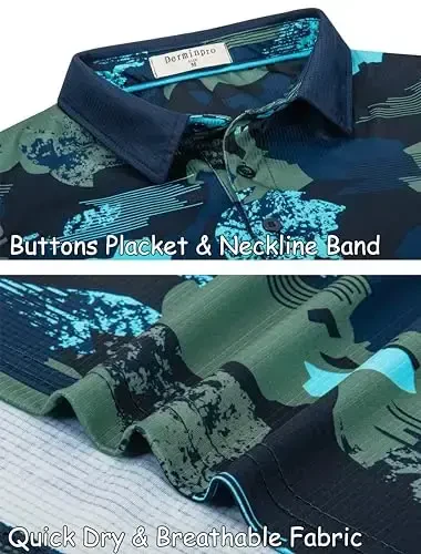 Derminpro Erkaklar Kamuflyaj Golf Ko'ylaklari, Namlikni Yutuvchi Qisqa/Uzun Qisma, Tez Quriydigan Golf Polo Ko'ylaklari. Mato: %95 Polyester, %5 Spandeks. Namlikni yutuvchi mato sizni salqin va qulay tutadi. 4 Yo'nalishli Cho'ziluvchan mato kamroq cheklovlar bilan harakatning kengroq doirasini ta'minlaydi. Golf, tennis, yugurish, mashq qilish va kundalik kiyim uchun mukammaldir. Kir yuvish mashinasida yuvish mumkin.