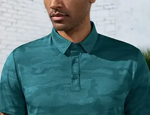 Derminpro Men's Camo Golf Shirts, Moisture Wicking Short/Long Sleeve, Quick Dry Golf Polos. Derminpro Men's Golf Shirt is made of 95% Polyester and 5% Spandex fabric. Lightweight, quick-drying and breathable fabric keeps you comfortable on and off the course. 4-Way Stretch fabric offers freedom of movement in every direction. UPF 50+ sun protection helps protect you from harmful UV rays. It offers a stylish look with a classic 3-button placket and camouflage print. Perfect for golf, tennis, running, training or everyday wear. Machine washable.