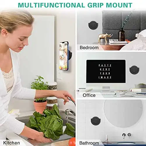 - Безопасно крепит телефон на приборную панель, дома, на столе или на стене.