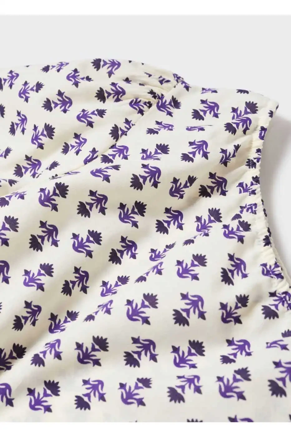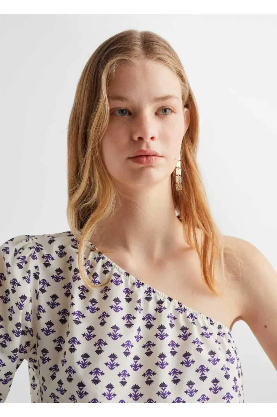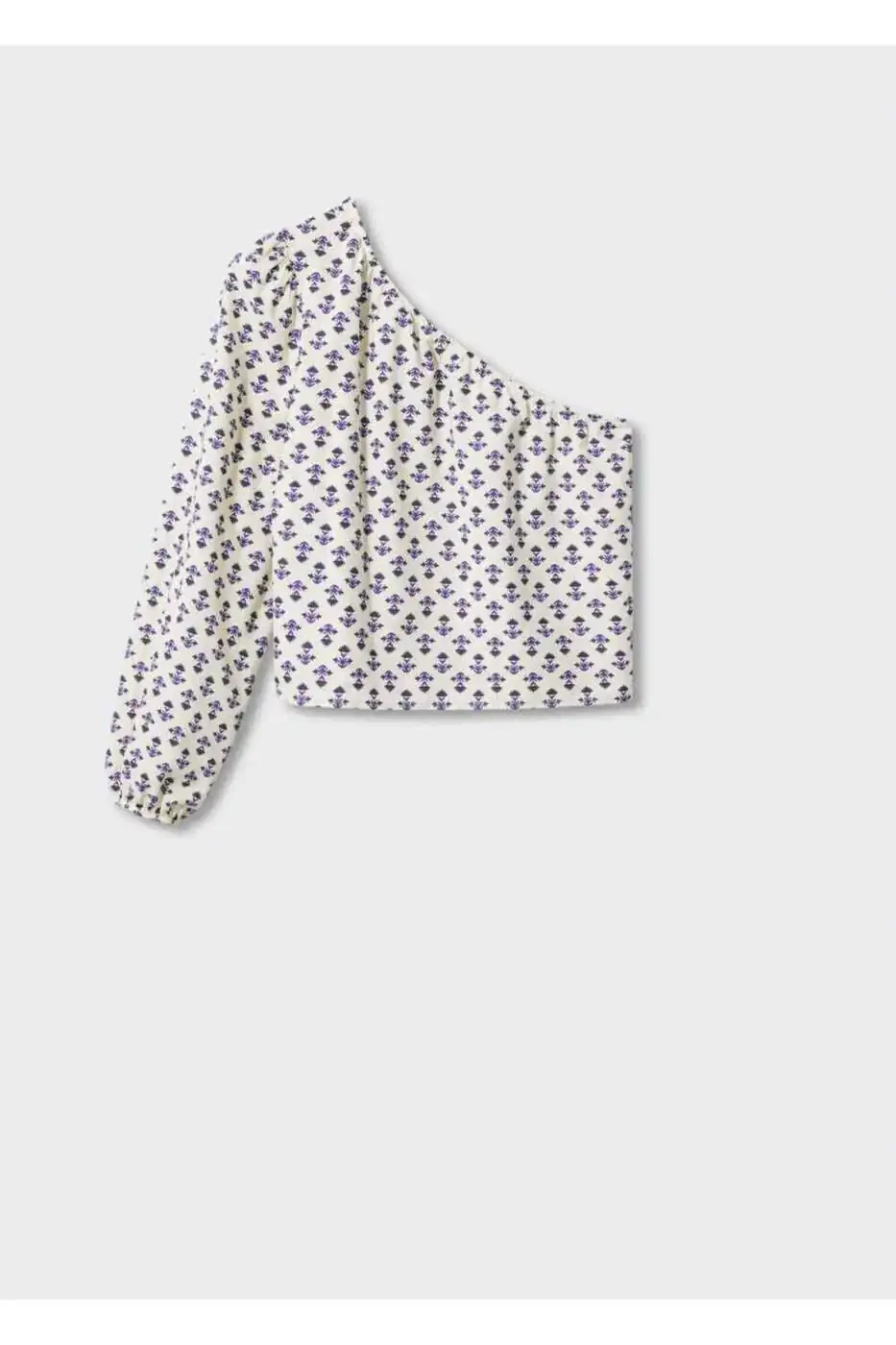 Desenli Asimetrik Bluz, %100 Pamuk, Tek Kol Tasarımı, Asimetrik Siluet, Asimetrik Yaka, Tül Dokuma, Kolay Bakım