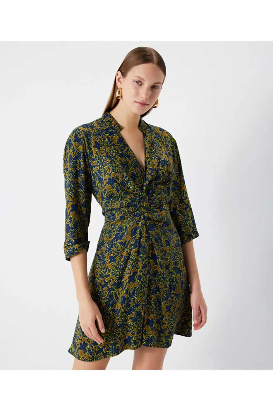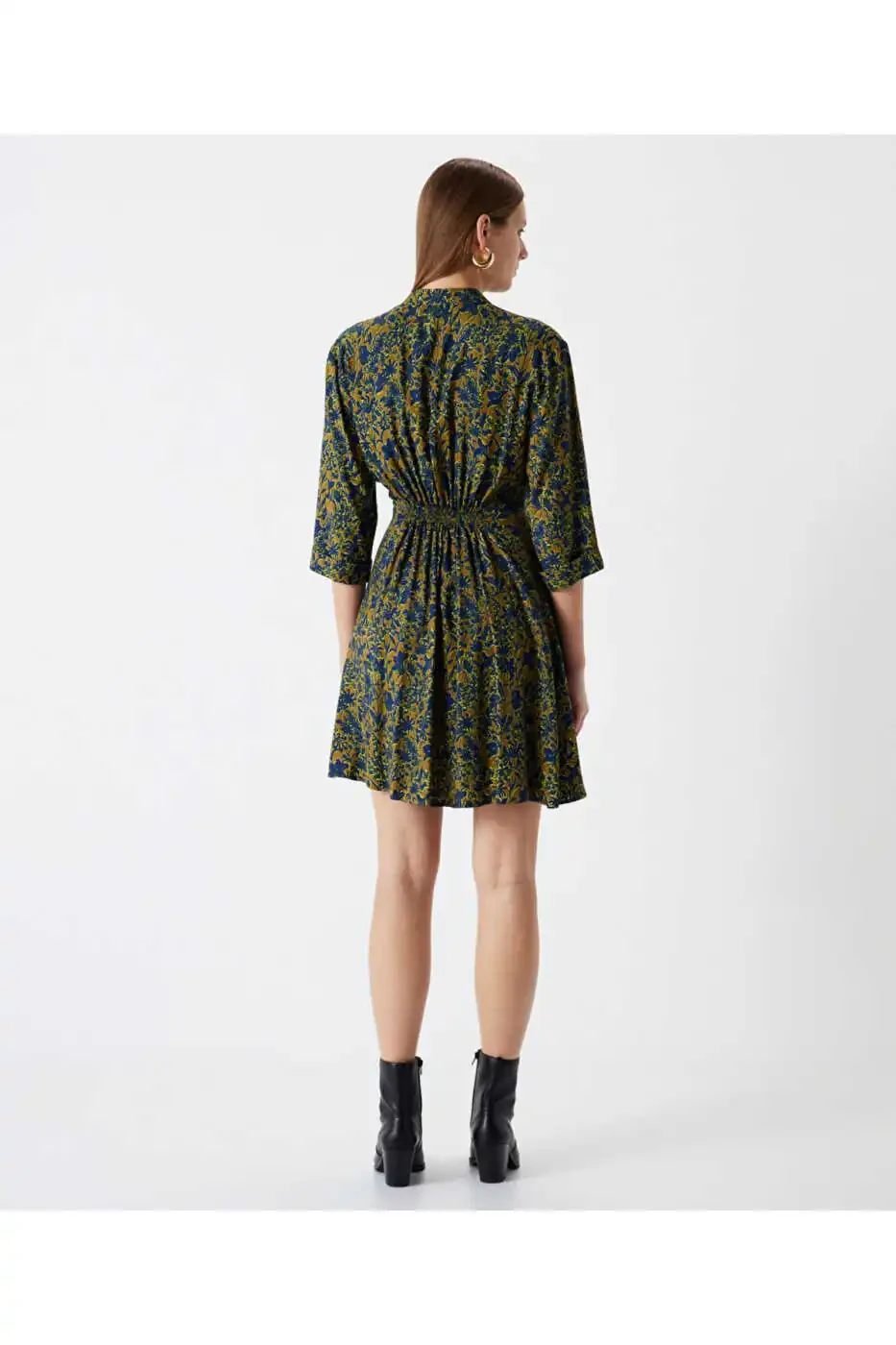 The patterned mandarin collar dress combines style and comfort, making it a must-have for every woman's wardrobe. With its elegant and modern design, this dress will make you look stylish in every environment, from everyday life to special occasions.