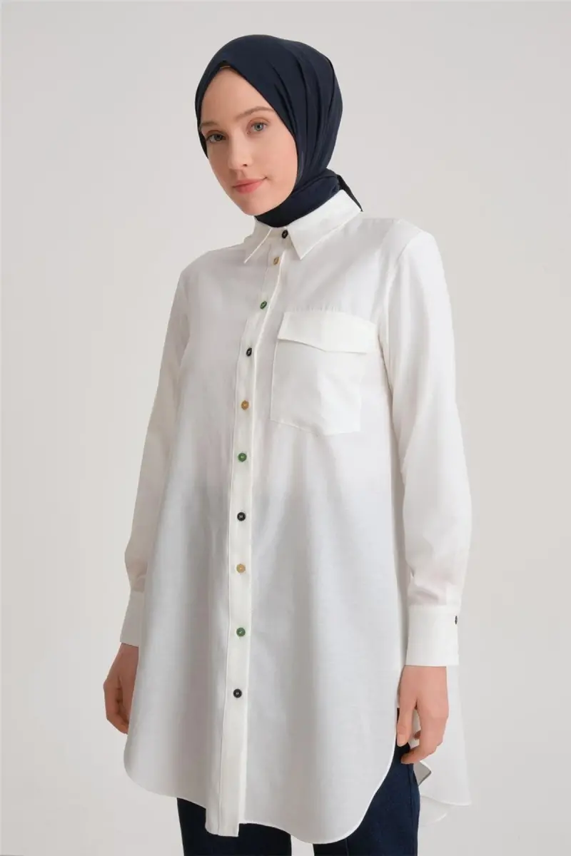 This tunic, with its stylish and elegant design, is set to become the favorite of our modest fashion collection. Its straight cut adapts to all body types, while its button details allow for easy dressing and undressing. Its regular length provides freedom of movement, while its woven fabric combines durability and comfort. With its wide range of users, this tunic is ideal for everyone, from young to old, for special occasions or everyday wear.