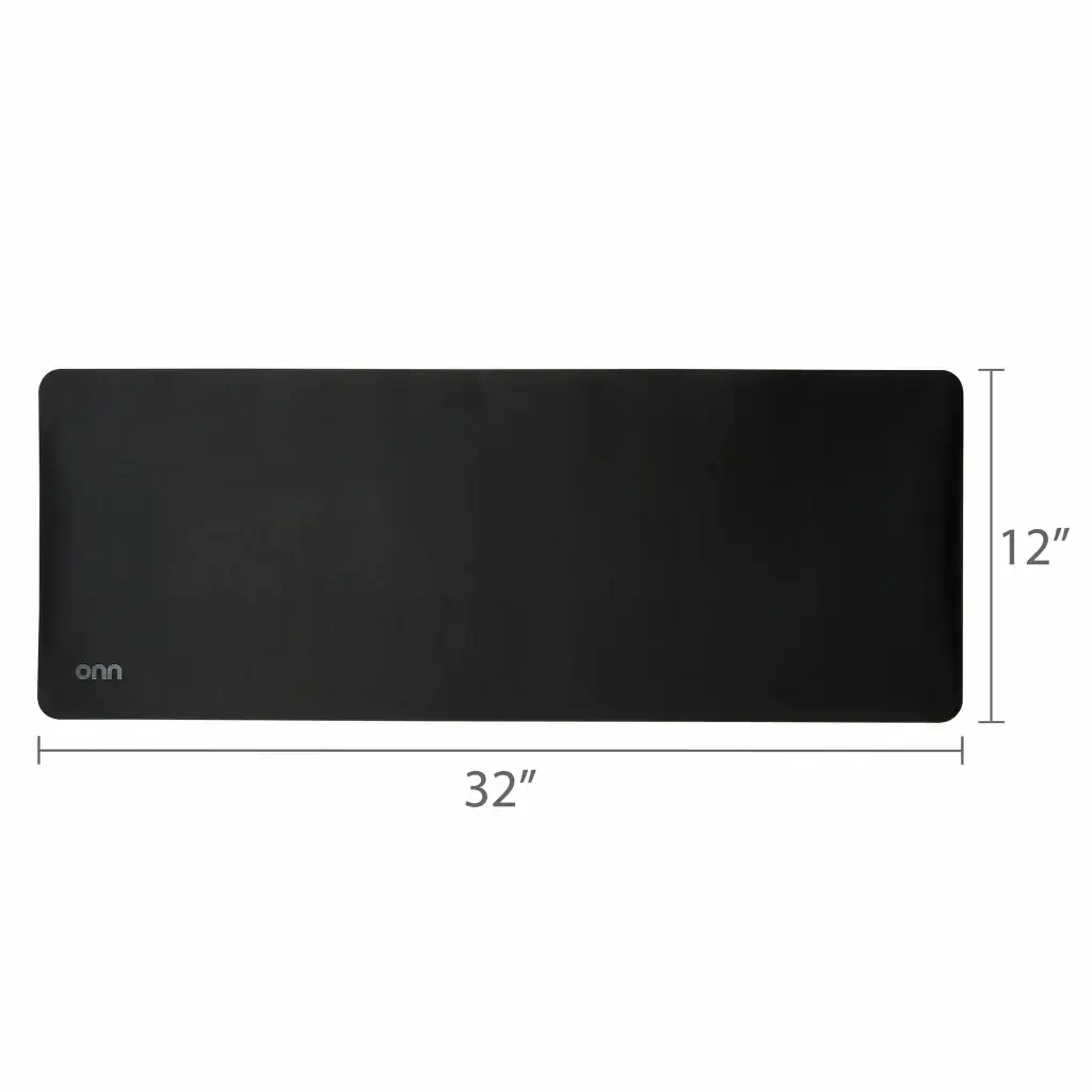 The Onn Desk Mat is a perfect blend of style and functionality. Its rectangular design complements any desk and its polyester surface protects your desk or kitchen countertop from scratches and stains. The non-slip natural rubber backing keeps the desk mat in place and prevents movement. Its black color seamlessly blends with any decor. The 32 inch x 12 inch size offers a spacious work area.