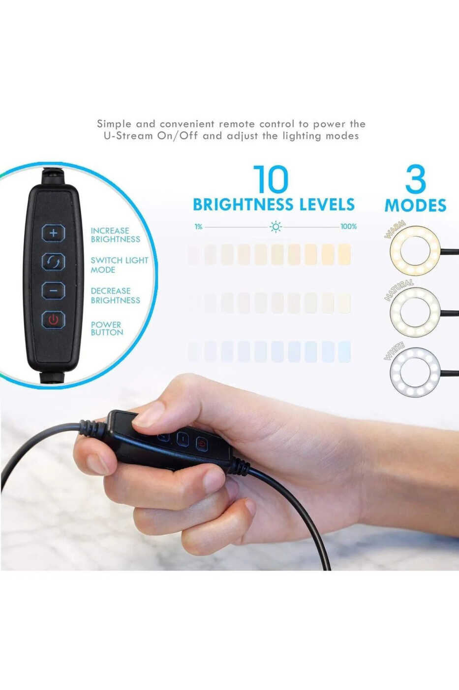 This desktop phone holder, a perfect solution for YouTubers, content creators and online educators, also functions as a stylish desk lamp. With 3 different color temperature options (warm white, natural white and cool white) and adjustable light intensity, it can be customized to meet every need.