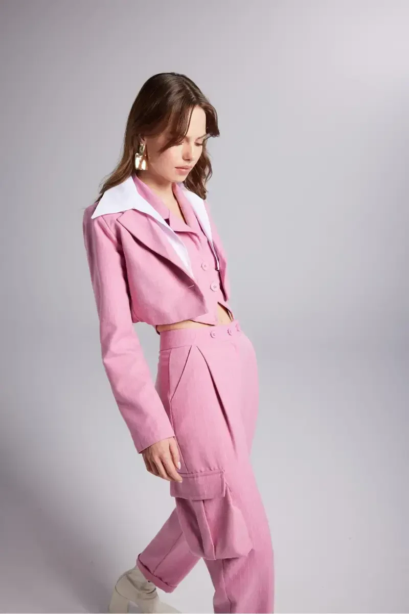50% Cotton 50% Acrylic, Detachable collar, crop model, striped.