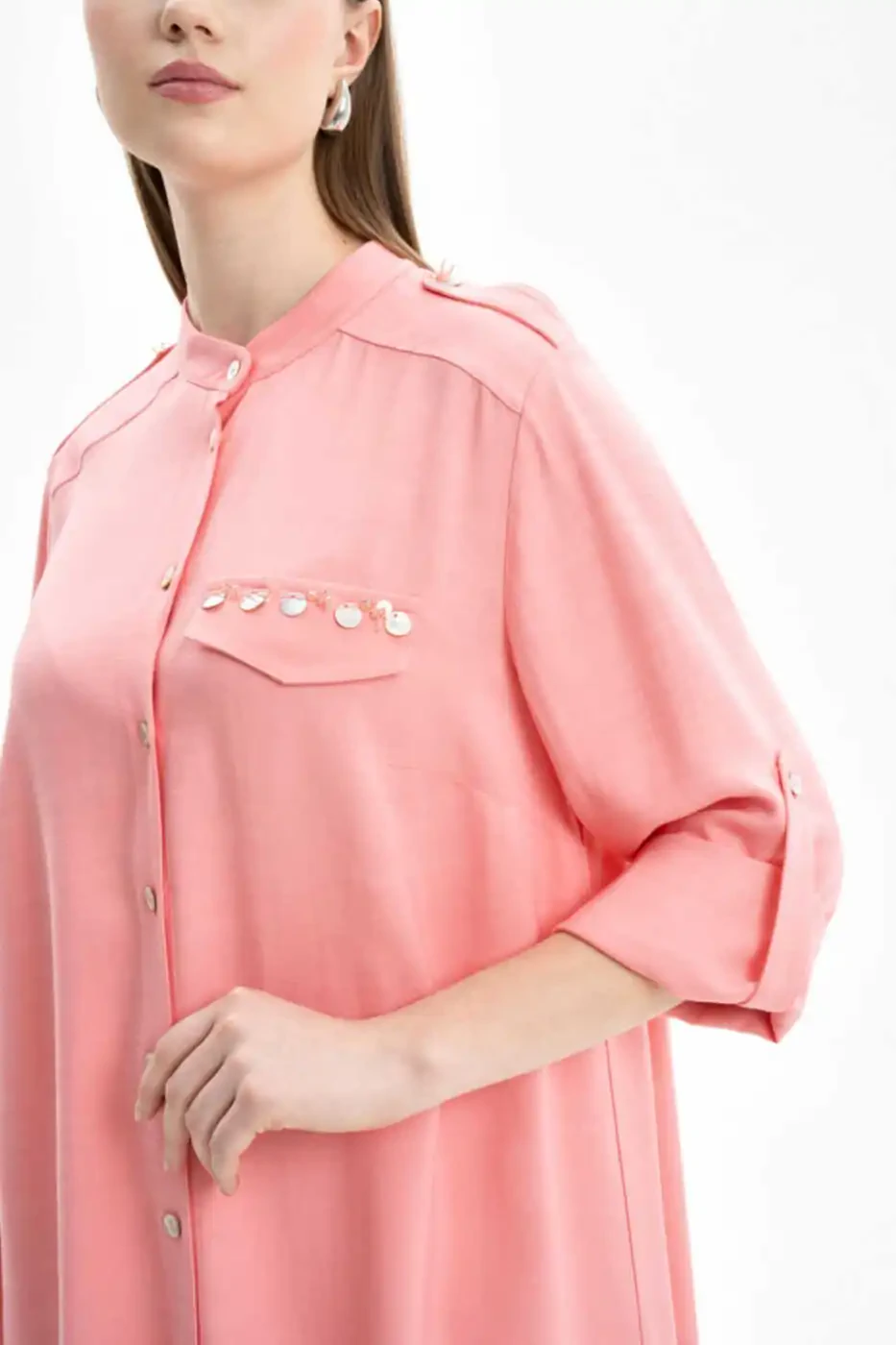 Combining elegance and grace, the Embroidered Epaulet Tunic is set to become one of your wardrobe's must-have pieces! With its meticulously crafted details and modern epaulets, this tunic will complement your elegance both in daily life and at special events. Thanks to its high-quality fabric, it offers comfort throughout the day, while its body-hugging cut provides a flawless look. Its elegant embroidery combined with a simple and chic design appeals to all ages and styles. The tunic can be combined with elegant trousers or a skirt for a glamorous look on special occasions, while in daily life, it allows you to achieve a comfortable and stylish look with jeans. Thanks to its breathable fabric, you will feel cool and comfortable in the summer months, and you can easily combine it with a jacket or cardigan during seasonal transitions. The embroidery details add a feminine touch to the tunic, while the epaulets create a strong and modern feel. This unique design will make you stand out in any environment. The quality and durability of the product guarantee that you will enjoy wearing it for many years. Its easy-to-iron feature saves you time in the hustle and bustle of daily life. The Embroidered Epaulet Tunic is an ideal choice for modern women who seek both elegance and comfort.
