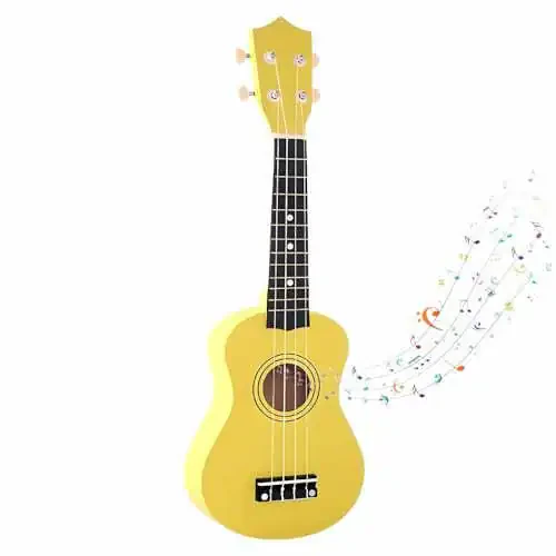 Гитара Jakeloo 21 Inch Wooden Acoustic — отличный выбор для детей, которые только начинают учиться играть на гитаре. Благодаря своим размерам 21 дюйм, ее легко держать детям, а ее легкая конструкция облегчает ее транспортировку. Гитара оснащена 4 различными струнами, которые можно настроить на разные высоты тона, что позволяет детям создавать различные звуки. Струны также регулируются, поэтому дети могут настроить гитару в соответствии со своим стилем игры.