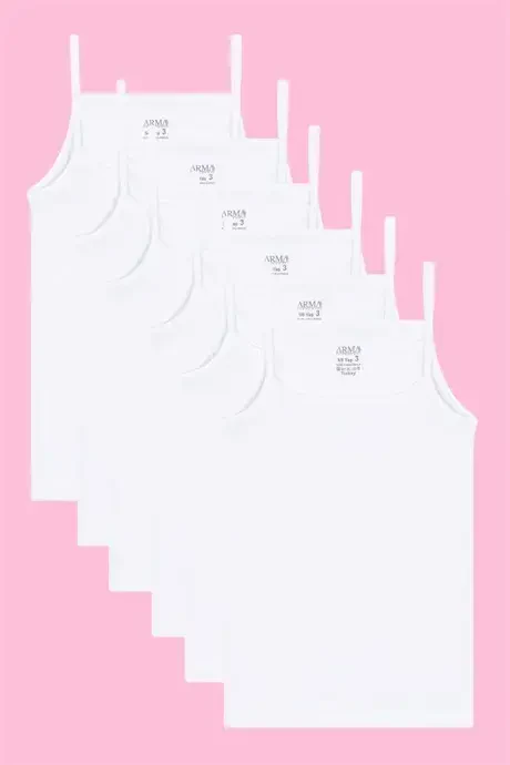 **Белый 6-набор маечек на тонких бретелях для девочек - 100% хлопковый рибана**