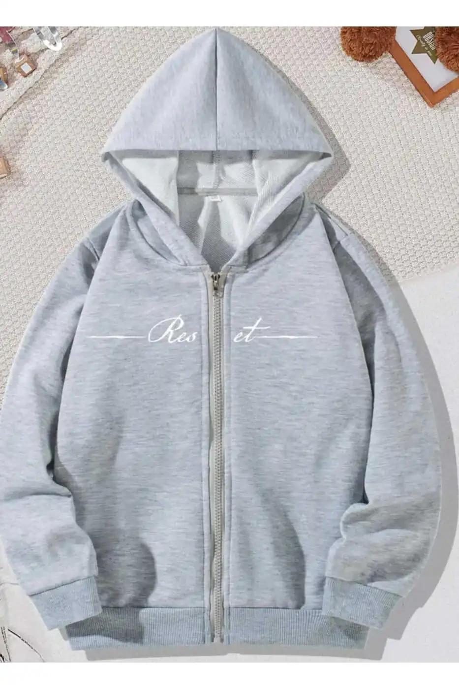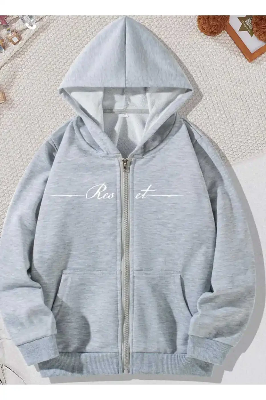 Детская толстовка с капюшоном для мальчика и девочки, серая, с молнией, с принтом - Теплая и стильная