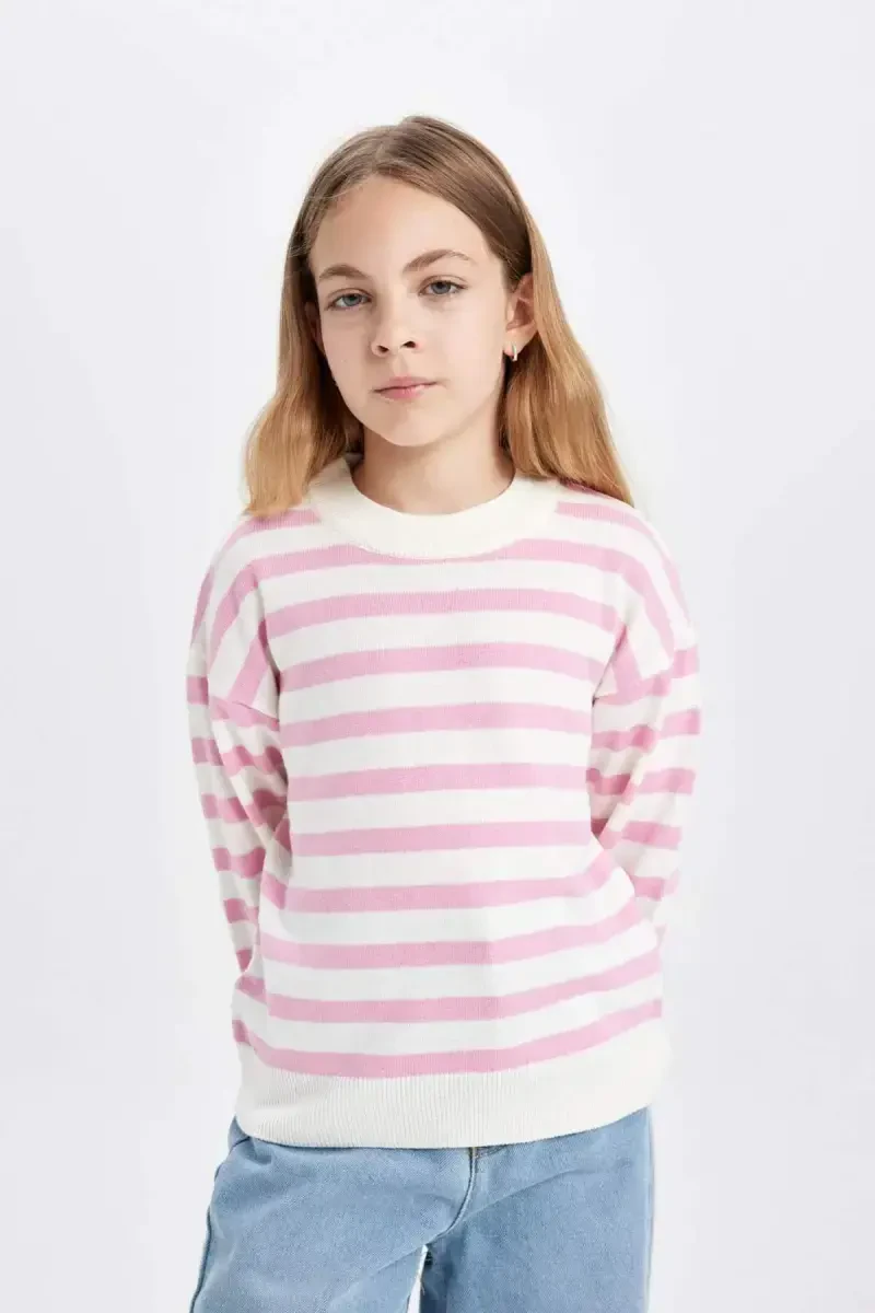 Подарите своим девочкам стильный и удобный образ с трикотажным свитером в полоску стандартного кроя с круглым вырезом для девочек. Этот розовый свитер, представленный под номером модели C6903A824AU, станет незаменимой вещью в гардеробе малышей. Этот свитер с круглым вырезом мягко облегает шею, а длинные рукава обеспечивают полную защиту в холодную погоду. Стандартный крой идеально сидит на фигуре детей, не ограничивая их свободу движений. Полосатый узор придает одежде динамичный и игривый вид. Этот свитер, изготовленный из высококачественного трикотажа, согревает и обеспечивает длительный срок службы. Его можно легко надеть как на каждый день, так и по особым случаям. Яркость розового цвета отражает энергию вашего ребенка, а полосатый узор позволяет создавать различные сочетания. Независимо от того, сочетаете ли вы его с джинсами или юбками, этот свитер всегда будет выглядеть стильно и мило. Этот трикотажный свитер, разработанный с учетом нежной кожи девочек, имеет особую текстуру, которая не вызывает аллергии и не раздражает кожу. Таким образом, ваш ребенок будет чувствовать себя комфортно и спокойно в течение всего дня. Кроме того, он нравится мамам благодаря простоте в уходе. Возможность машинной стирки значительно облегчает вашу напряженную жизнь. Трикотажный свитер в полоску стандартного кроя с круглым вырезом для девочек – это вещь, которую обязательно нужно иметь в гардеробе малышей, сочетающая в себе стиль и комфорт. Этот свитер, который отразит стиль вашего ребенка и выделит его в любой обстановке, также защитит его здоровье, согревая в холодную погоду. Привнесите радость в каждый момент жизни вашего ребенка с помощью энергии розового цвета и веселья полосатого узора. Этот свитер – не просто одежда, это также вариант, который повысит уверенность вашего ребенка в себе и заставит его чувствовать себя хорошо. Этот трикотажный свитер, который ваши девочки будут носить с удовольствием, привлекает внимание своим высоким качеством и доступной ценой. Добавив эту стильную и практичную вещь в гардероб вашего ребенка, вы придадите ему удобный и стильный вид. Помните, что делать правильный выбор важно для счастливых детей. Приумножьте счастье своего ребенка с помощью трикотажного свитера в полоску стандартного кроя с круглым вырезом для девочек.