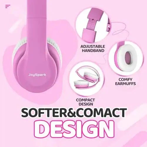 Детские Bluetooth-наушники JoySpark - отличный вариант для ваших детей, чтобы погрузиться в мир музыки. Благодаря длительному времени работы от батареи до 60 часов и подключению Bluetooth 5.3 они обеспечивают беспрерывное музыкальное удовольствие. Они также имеют встроенный микрофон, чтобы ваши дети могли легко совершать телефонные звонки.