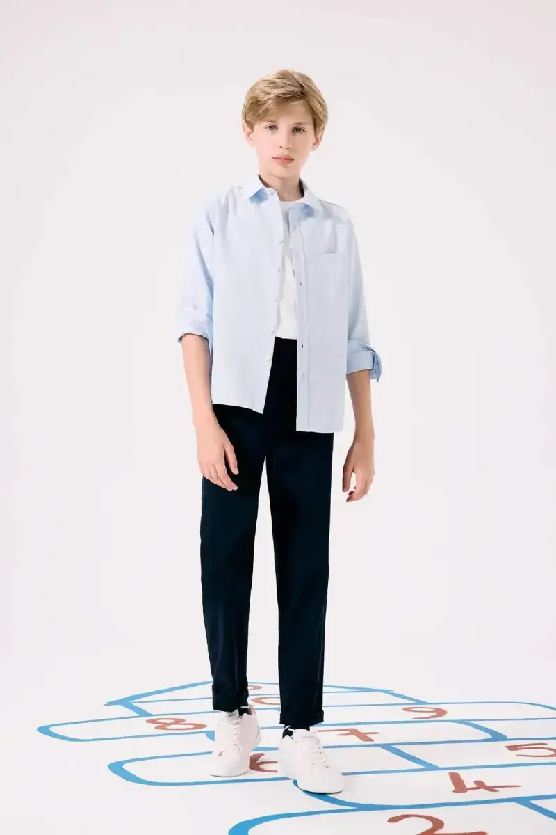 Наши детские синие брюки прямого кроя из габардина, сочетающие в себе стиль и комфорт, предназначены для того, чтобы стать неотъемлемой частью гардероба маленьких джентльменов. Изготовленные из высококачественной габардиновой ткани, эти брюки обеспечивают воздухопроницаемость и комфорт в течение всего дня. Прямой крой создает стильный образ, подходящий для любого стиля.