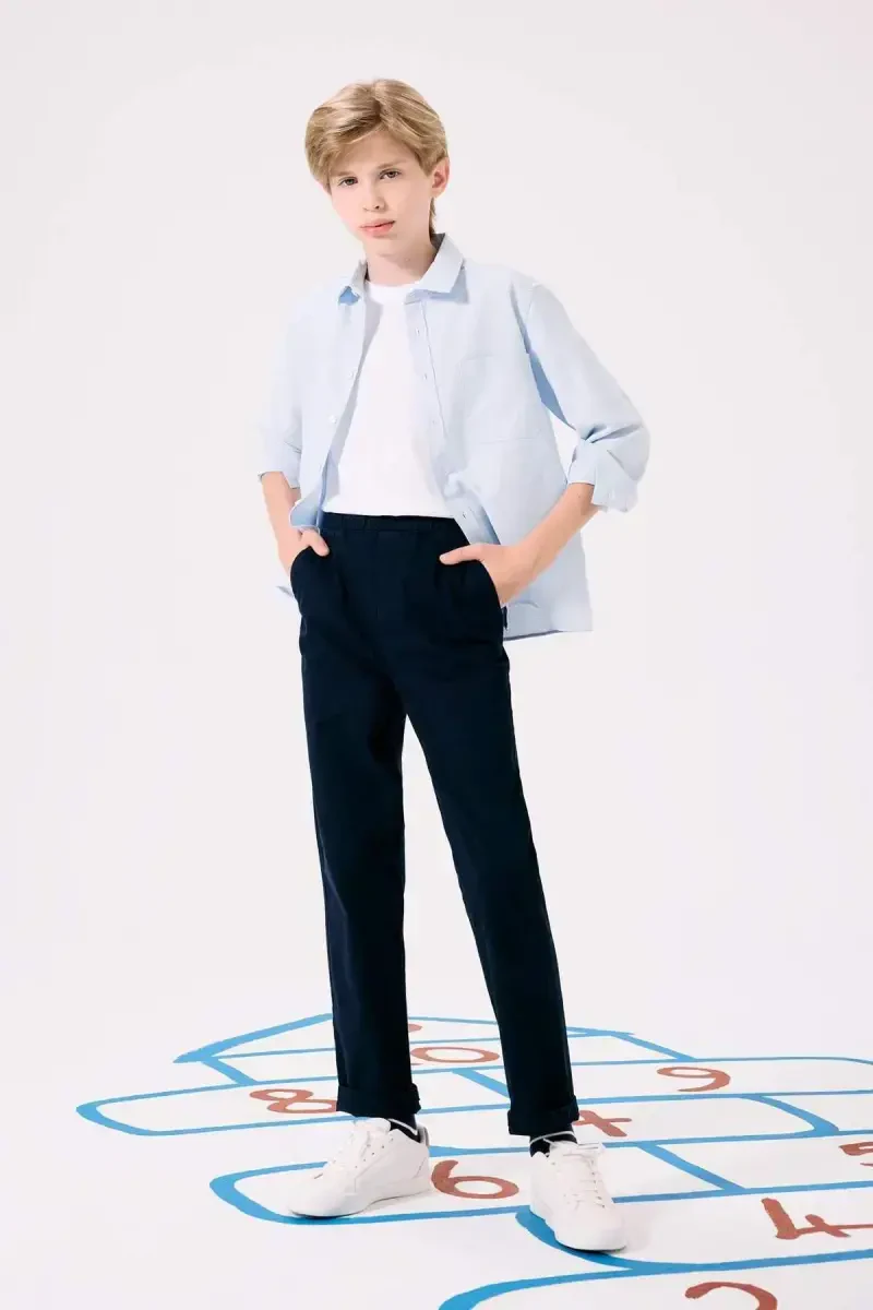 Наши детские синие брюки прямого кроя из габардина идеально подходят для создания стильного и комфортного образа для особых случаев, школы или повседневной жизни. Благодаря высококачественной ткани и стильному дизайну эти брюки будут дополнять стиль маленьких джентльменов долгие годы. Закажите прямо сейчас, чтобы добавить стиля и комфорта в гардероб вашего ребенка!