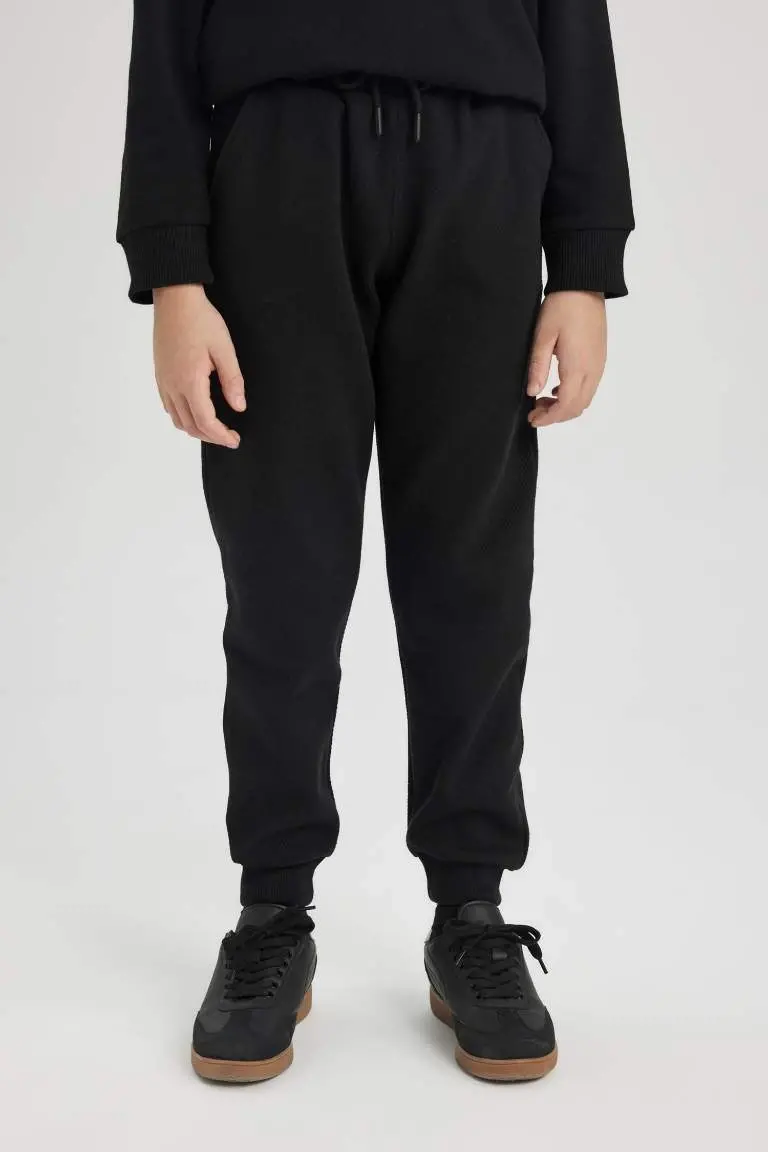 **Спортивные штаны-джоггеры для мальчиков, черные** Спортивные штаны-джоггеры Basic, разработанные специально для активных мальчиков, сочетают в себе комфорт и стиль для повседневного использования. Эти спортивные штаны универсального черного цвета легко сочетаются с любым верхом. Они изготовлены из ткани 100% хлопок, обеспечивая комфорт вашему ребенку в течение всего дня. **Характеристики:** * Ткань 100% хлопок * Удобный и эластичный пояс * Два боковых кармана * Однотонный черный дизайн * Можно стирать в машине **Преимущества:** * Мягкая и дышащая ткань обеспечивает комфорт вашему ребенку в течение всего дня. * Эластичный пояс обеспечивает свободу движений. * Боковые карманы идеально подходят для надежного хранения мелких предметов. * Однотонный черный дизайн легко сочетается с различными топами. * Можно стирать в машине для легкого ухода. Для комфортного и стильного варианта, который ваш ребенок может носить в своих повседневных приключениях, спортивные штаны-джоггеры Basic обеспечивают как свободу движений, так и комфорт.